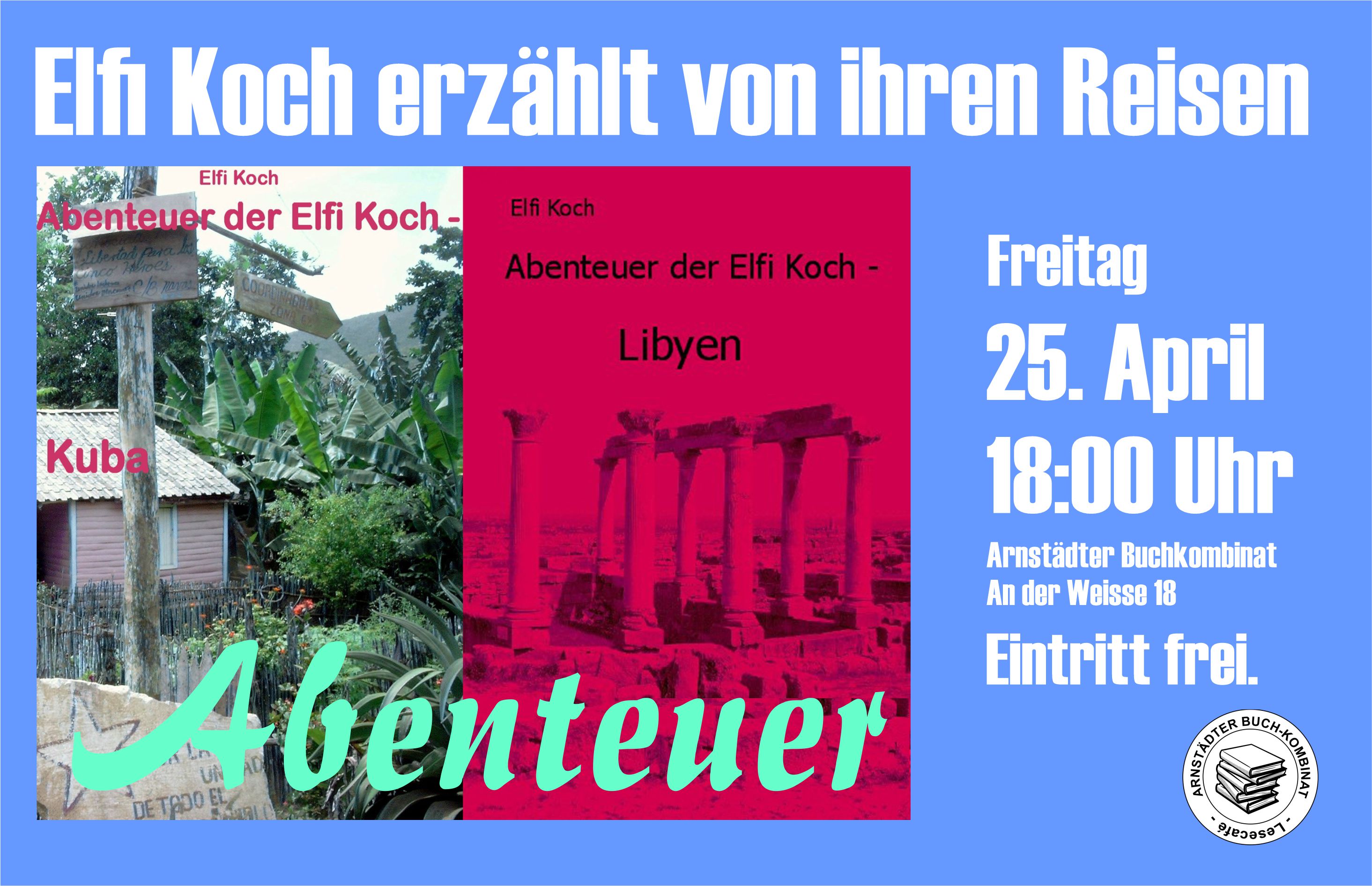 „Abenteuer der Elfi Koch – Libyen"Auch ihr Werk über Libyen folgt diesem Konzept. Sie reist mit ihrem Mann durch das Land und erlebt die Kultur und Geschichte hautnah. Ihre Berichte sind geprägt von unerwarteten Begegnungen, spontanen Entscheidungen und der Freude am Entdecken. Das Buch vermittelt nicht nur Reiseerlebnisse, sondern auch ein tieferes Verständnis für die Menschen und die Lebensweise in Libyen.